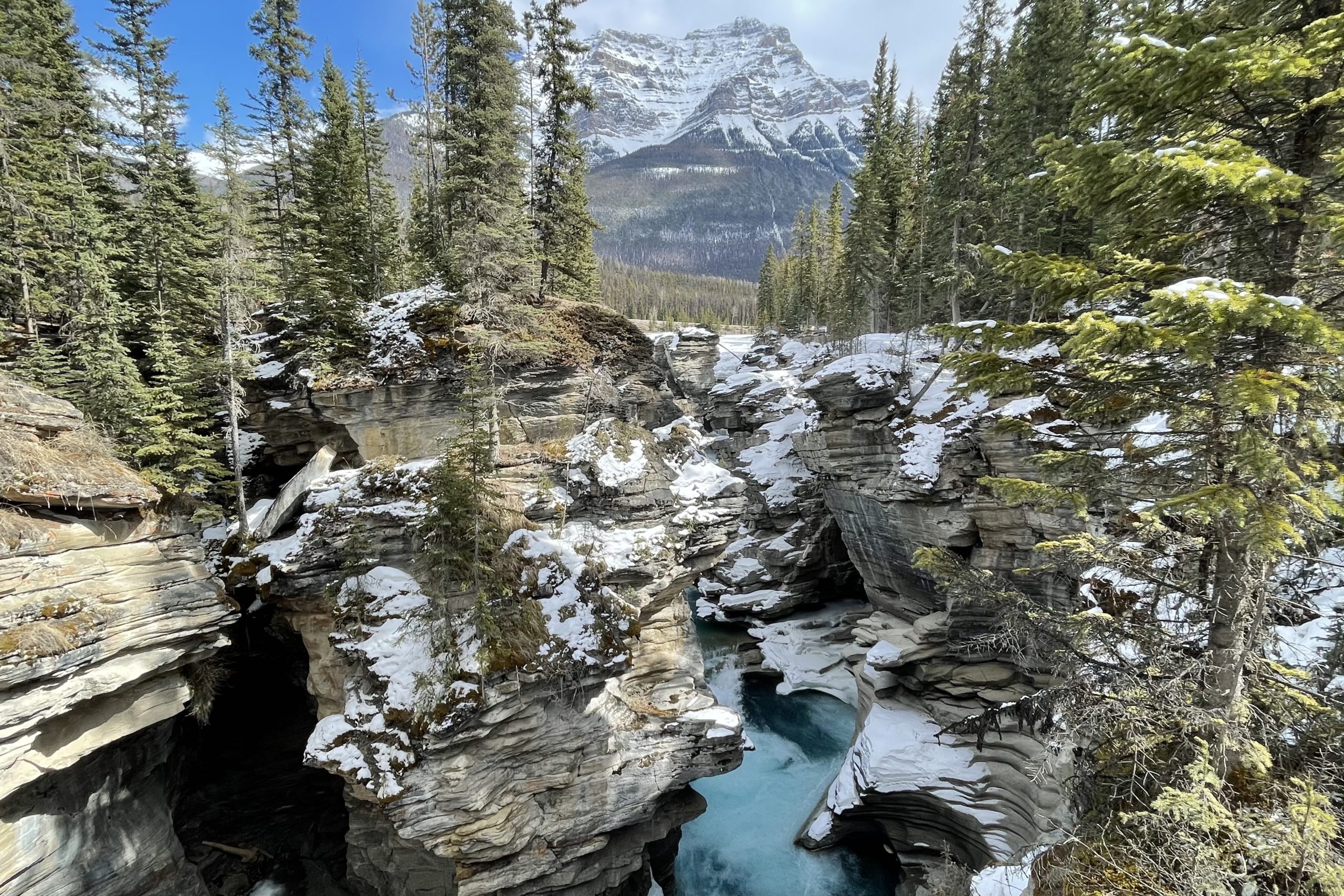 - Athabasca Falls: Located right off the highway, this natural wonder is easy to access with a well-groomed trail that makes for a nice quick sto