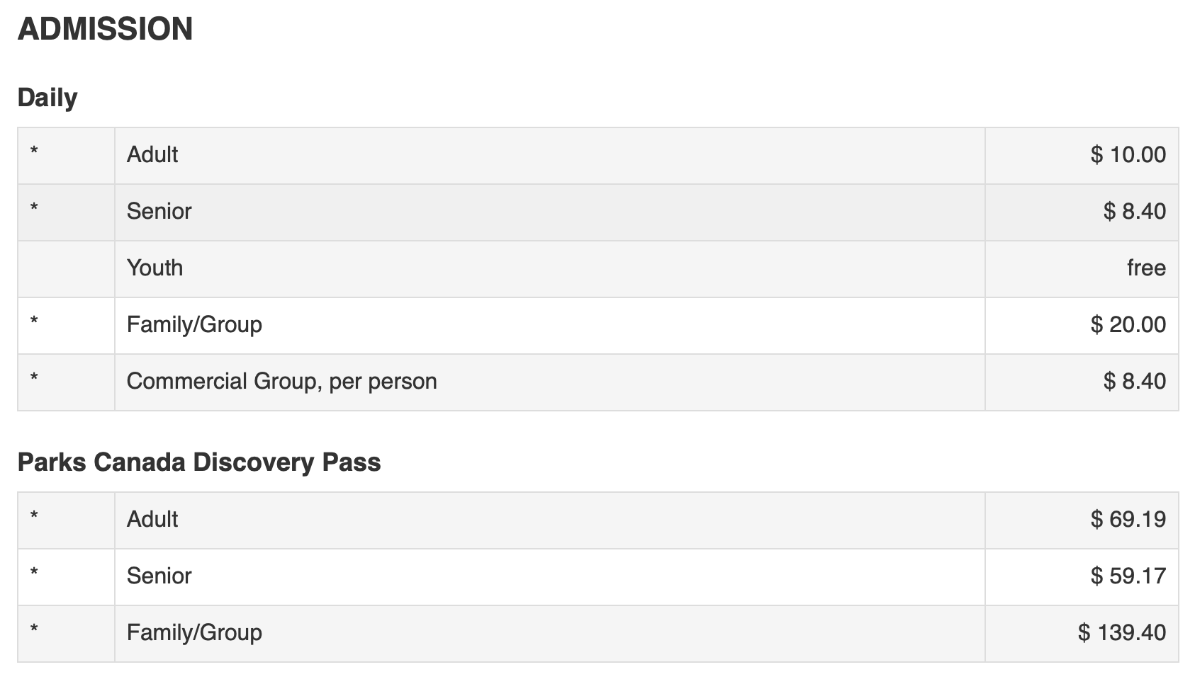 This is an annual pass which grants access to over 80 sites managed by Parks Canada, including National Parks, National Marine Conservation Areas, and National Historic Sites.