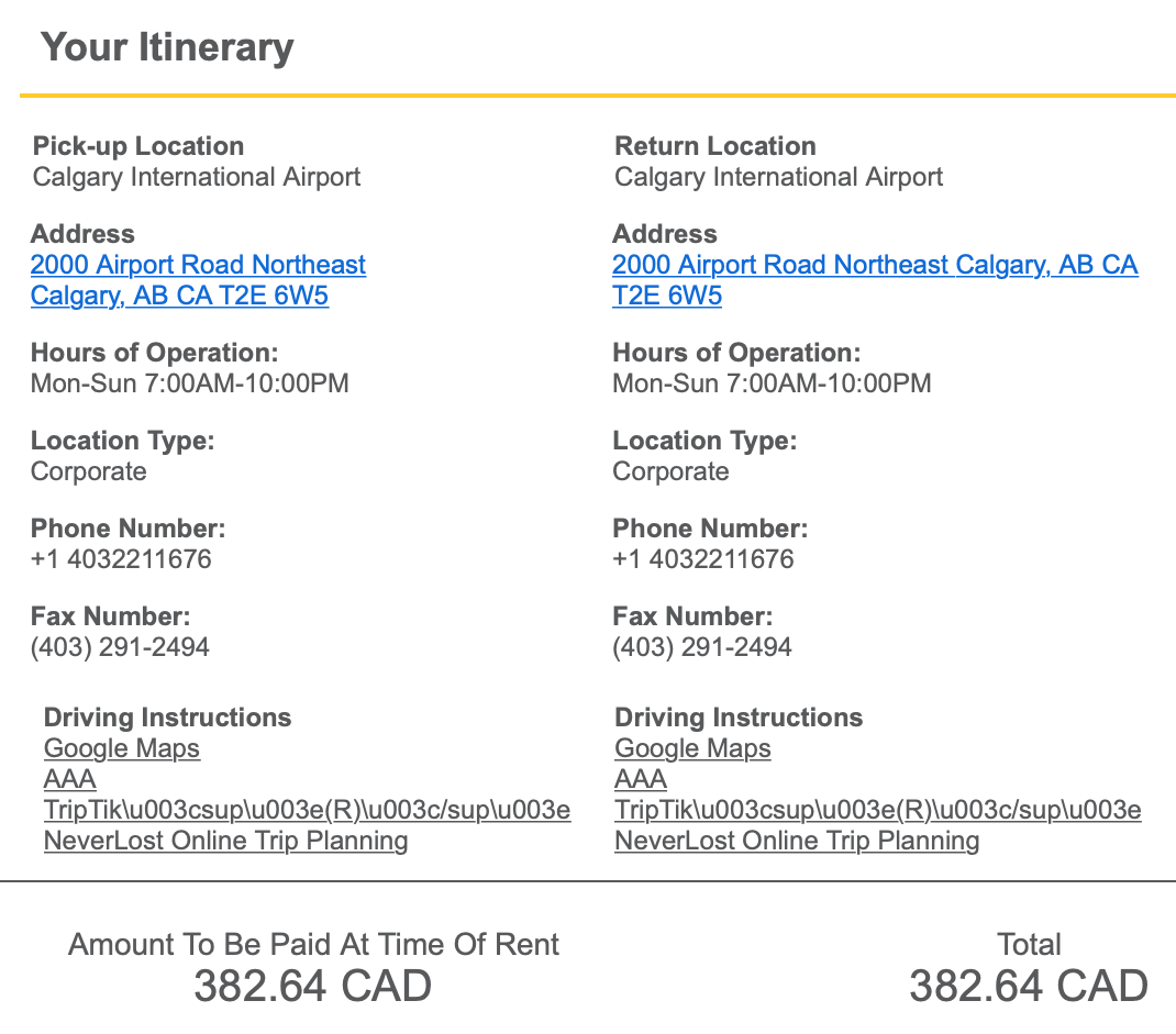 Car rentals in Alberta can get pretty expensive. We’ve had particularly good luck with Hertz, so we usually rent with them.