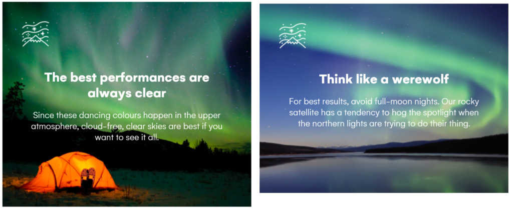 This experience gives you the opportunity to see the aurora from above the clouds, as well as a number of on-ground activities, flights, meals, accommodation, and other inclusions. In-flight, they serve glowing green cocktails and choose a flight path that scientists determine to have the best light-show on the outside.