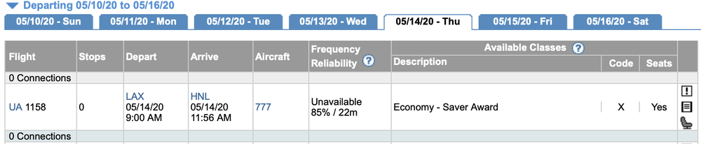 As seen below, for example, while ExpertFlyer and Aeroplan both show award space in economy class for United Flight 1158 on May 14, 2020, the Turkish website fails to bring up the search result. The same is true of many other searches of domestic itineraries that one might try.