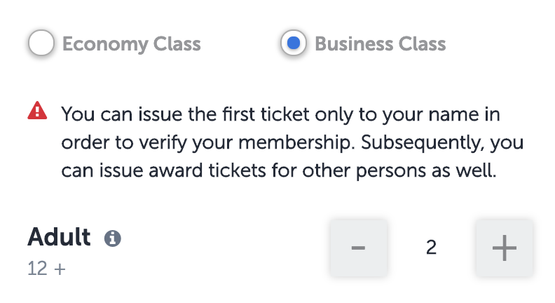 Another bug I discovered was that the website routinely gives you errors if you attempt to search for award space for more than one person, as it asks you to issue the first ticket in your name first before issuing tickets for your fellow passengers, but the website frequently errors out on that step.