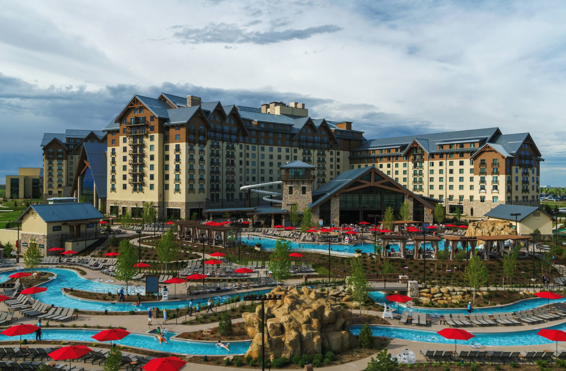 These massive resorts feature year-round activities including water parks with slides, lazy rivers, pools, surf simulators, and outdoor snow tubing in the winter.