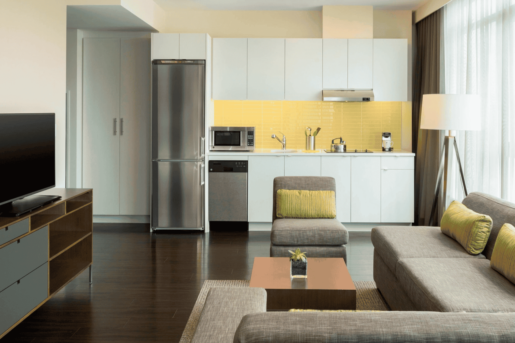 Element hotels offer eco-conscious, modern, and functional rooms that feature spa-like bathrooms and full kitchens, which makes dining-in an option.