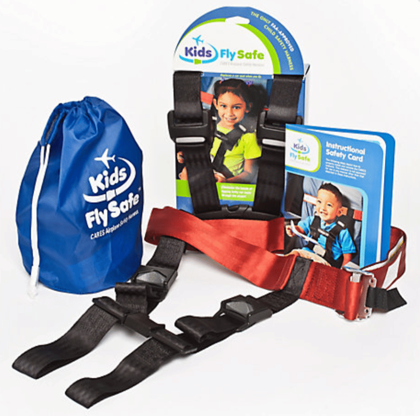 If your toddler is older than two, an alternative to a car seat is the CARES Child Aviation Restraint System. It gives your child the safety of chest and shoulder straps, which you would normally have with a car seat, but saves you the hassle of having to lug an actual car seat.