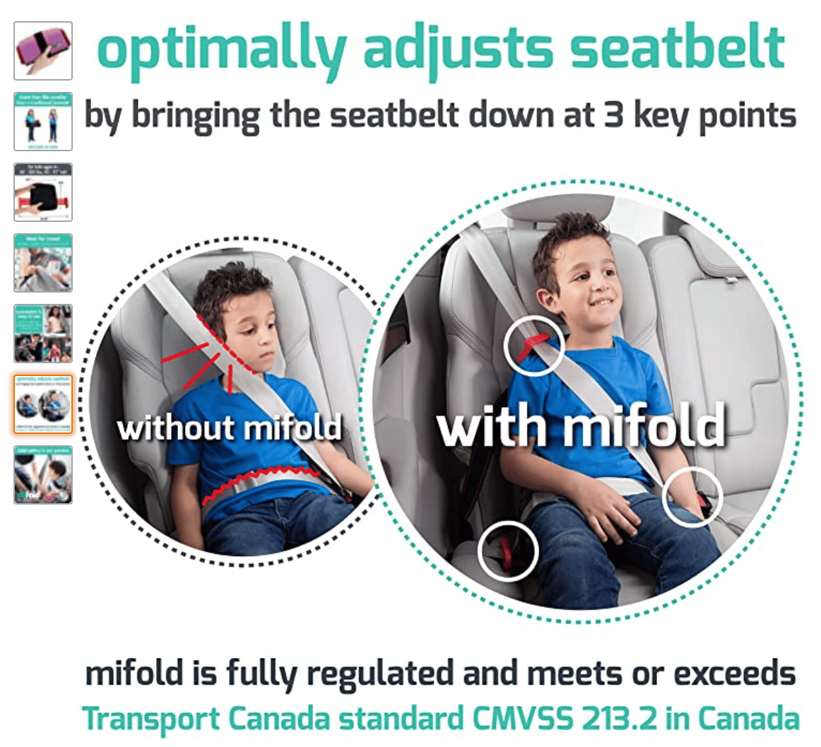 If your child is fresh into a booster like mine, you may want to opt for the Mifold Hifold Fit-and-Fold Booster.