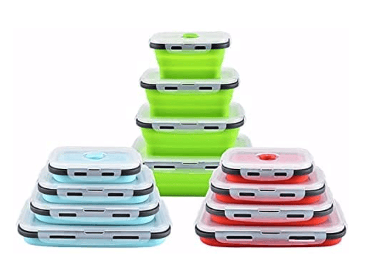 To save space and be environmentally-friendly, consider reusable, collapsible containers.