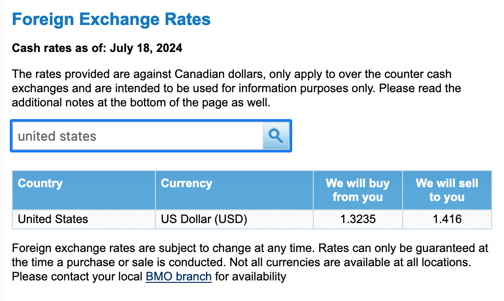If you choose to go this route, keep in mind that some banks, like BMO, are a bit of a blast from the past and only do foreign exchange in person at the bank.