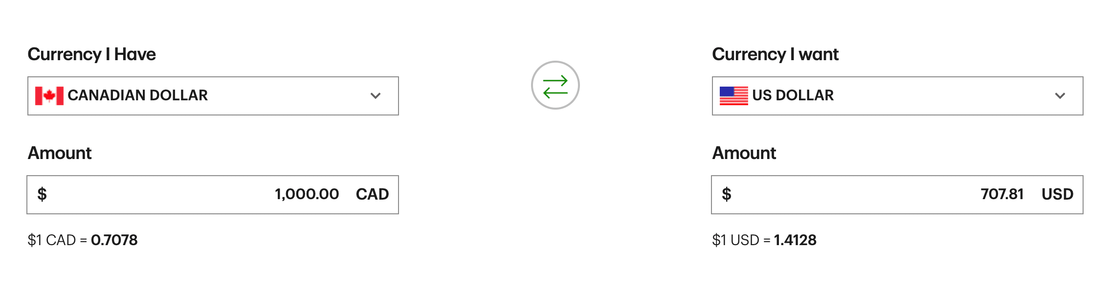 There are a few websites that offer this service, but by far the best rates we’ve seen thus far have come from the Toronto-based forex exchange Interchange Financial, so let’s look at what we’ll get for our CAD-to-USD example: