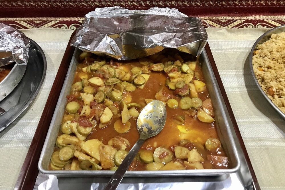 As we guests took in the sunset view, our hosts were busy preparing the traditional Bedouin dinner, which is cooked in a zarb, or an underground oven beneath the sand, for several hours.