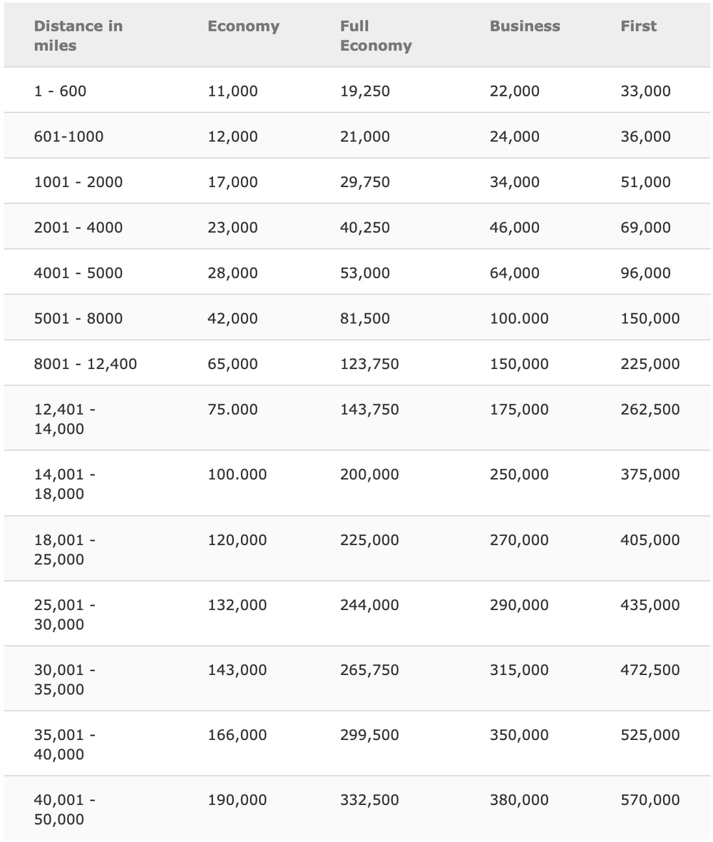 Meanwhile, for comparison’s sake, here’s the Oneworld chart that would be used by British Airways Avios: