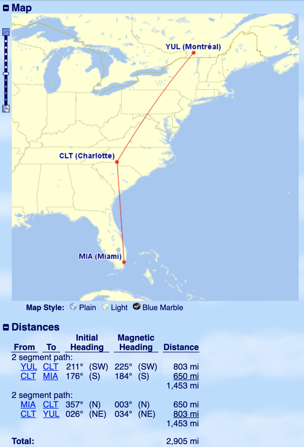 Moreover, if your itinerary has a connection, then you’ll also save some Avios by going through Iberia, because of the different pricing method for itineraries with connections. Imagine that American Airlines only has availability on Montreal–Charlotte–Miami, rather than the direct Montreal–Miami flight (a situation which arises pretty often in my experience).