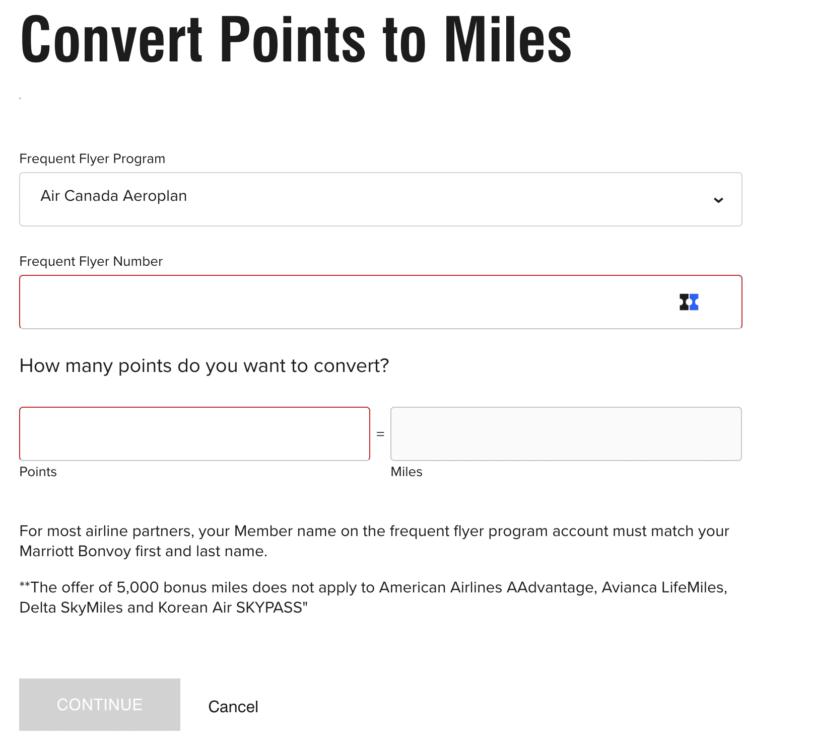 Lastly, choose how many Bonvoy points you wish to convert, and then click “Continue”.