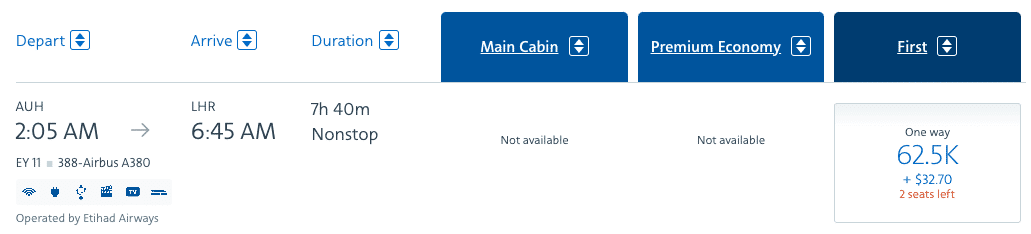 It costs only 40,000 Asiana Club miles (equivalent to 105,000 Bonvoy points) to redeem for a flight on Etihad Airways First Class Apartments from Abu Dhabi to London, which is one of the lowest mileage rates in any program out there.