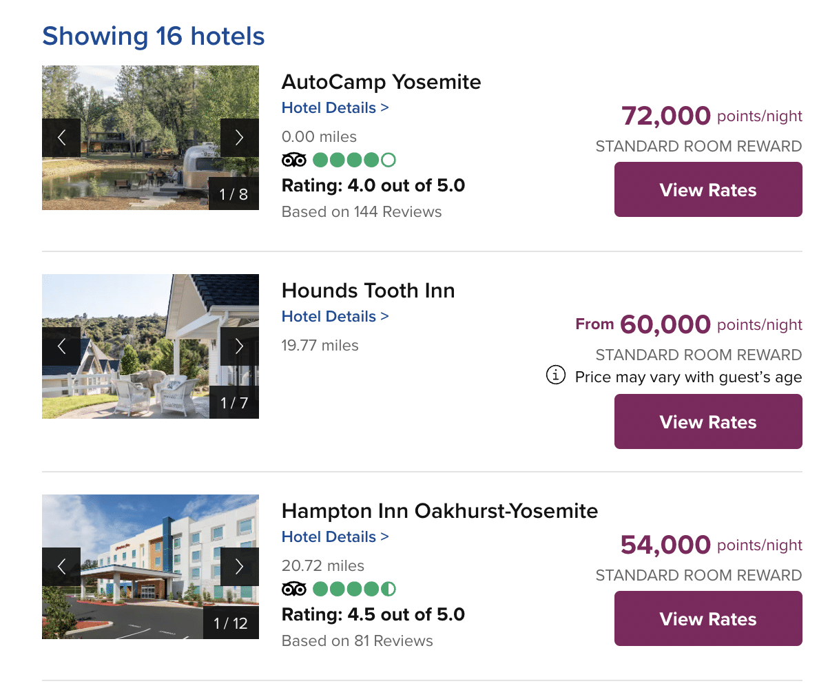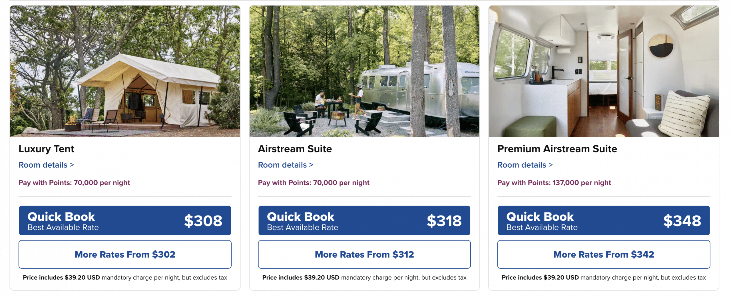 - Airstream Suite: 70,000 points per night