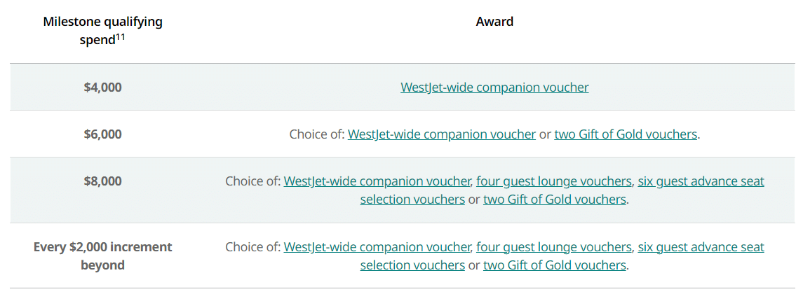 For example, to qualify for the Gold tier, your tier qualifying spend must be between $5,000 and $7,999 from January 1 to December 31, since WestJet defines a “qualifying year” as a calendar year.
