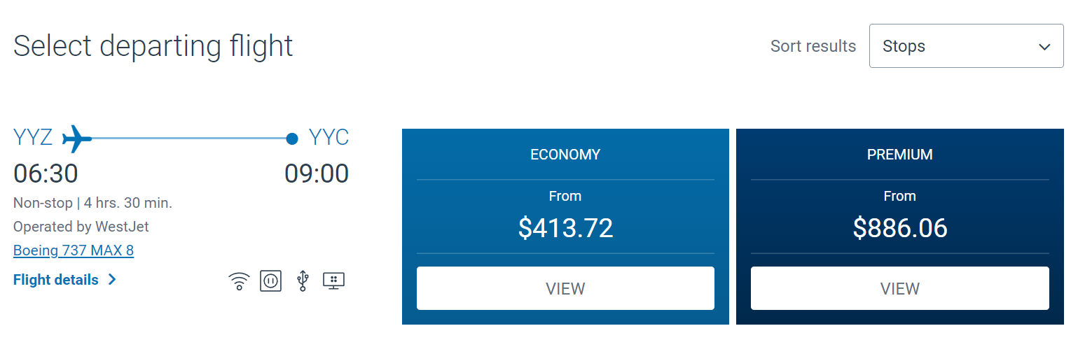 All you need to do is search for a flight on WestJet’s website and look for the Wi-Fi logo in the search results.