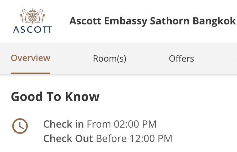 Ascott properties, however, generally offer a 2 p.m. check-in and a 12 p.m. check-out, which is far more accommodating.