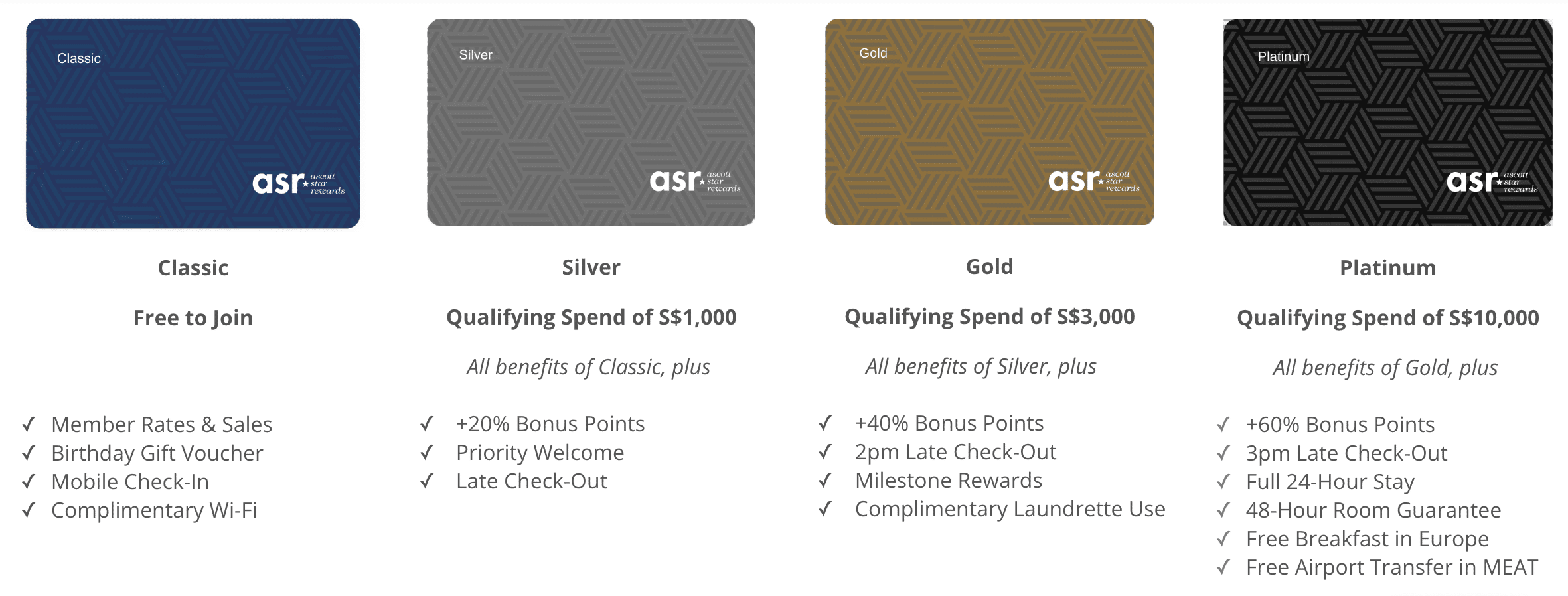 - Classic: Entry-level, earn 10 points per S$1 spent