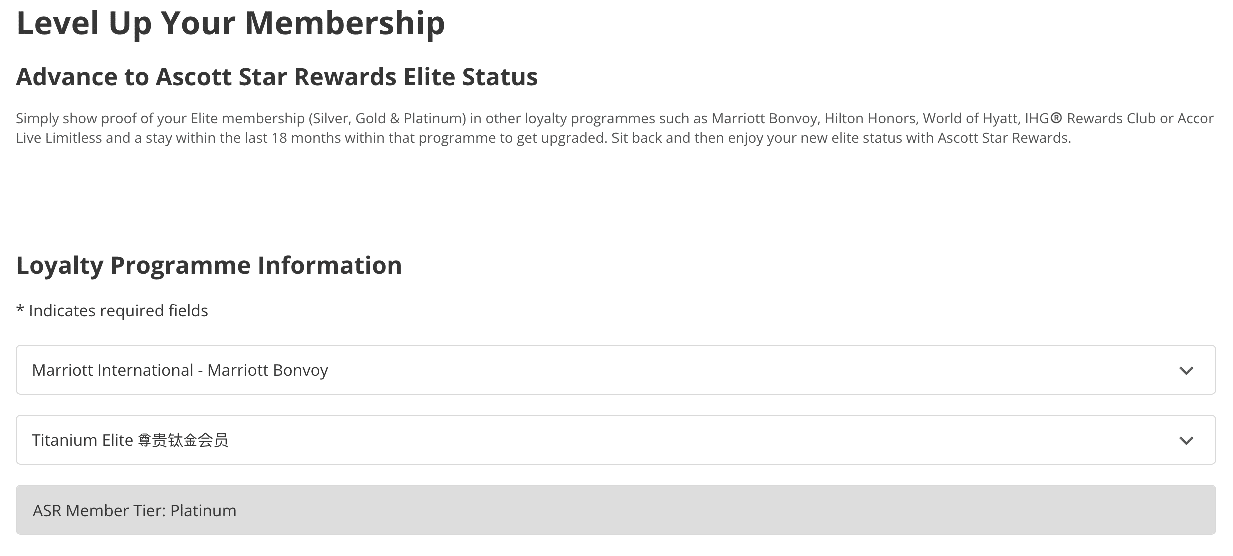 Eligible programs include Marriott Bonvoy, Hilton Honors, World of Hyatt, among others. The process is simple: simply submit proof of your elite status through the ASR status match page, and upon approval, you’ll receive the corresponding ASR tier.