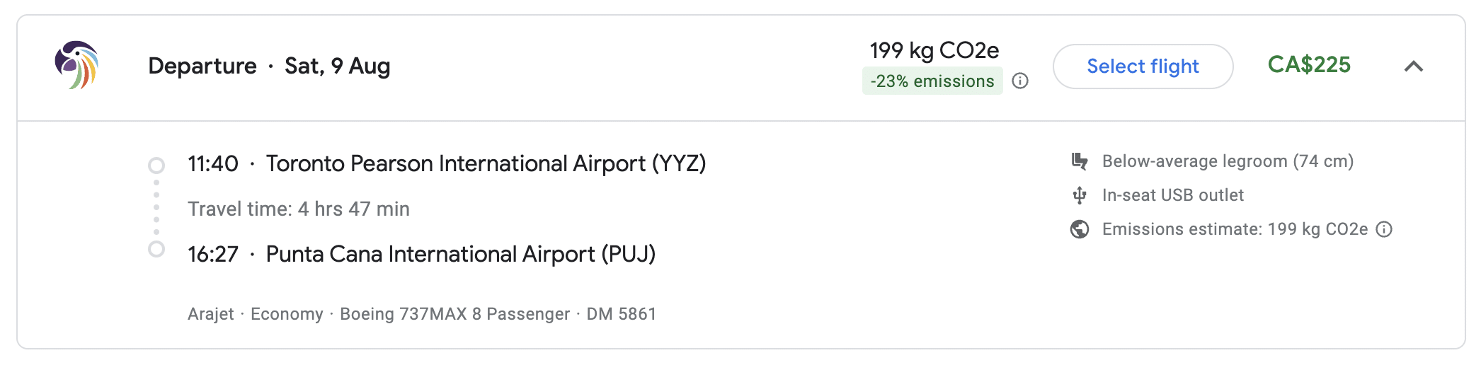 Out of Toronto and Montreal, Arajet is often the cheapest option on the routes and connections it serves. With Arajet’s frequent promotions, it’s possible to find the following one-way fares when booked in advance: