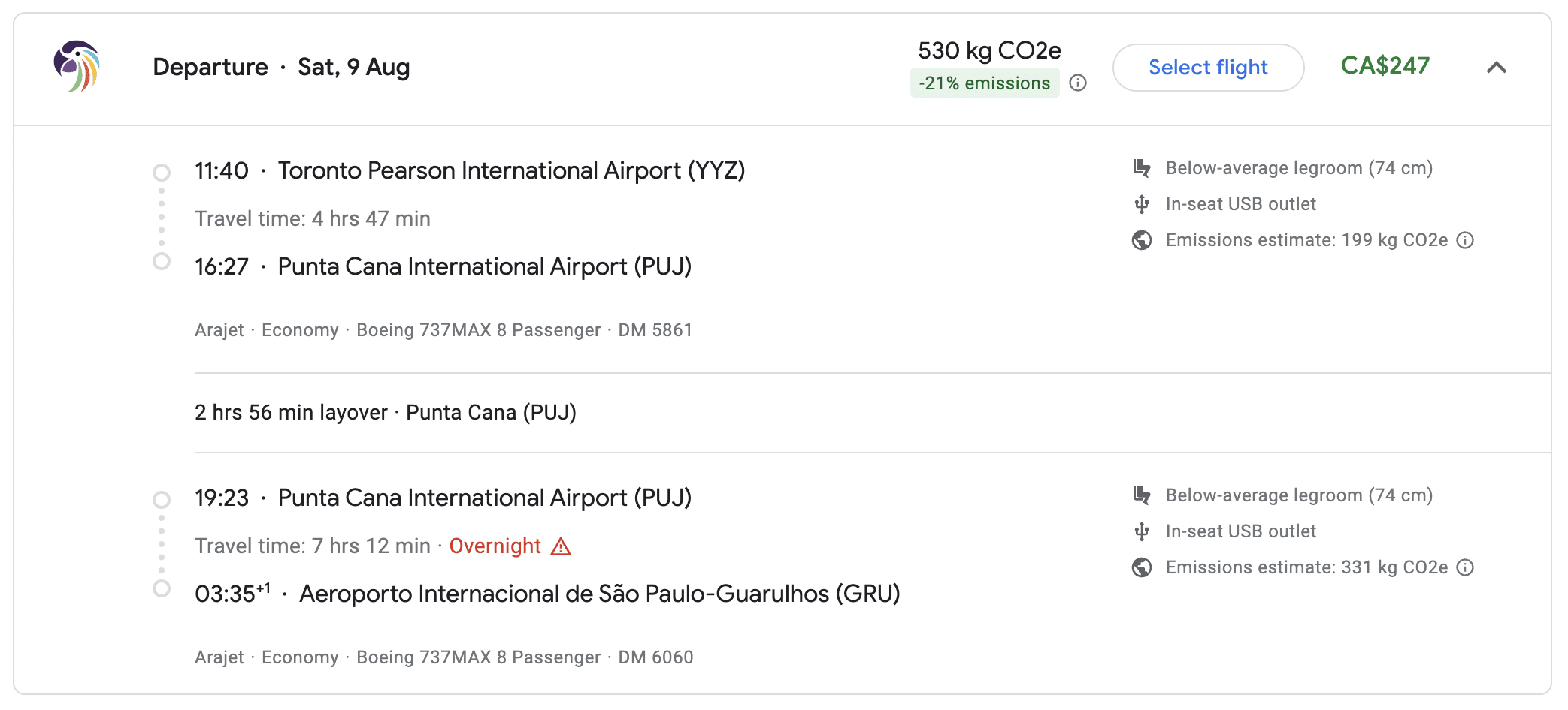 To illustrate simply, you can book Toronto (YYZ) to Punta Cana (PUJ) or São Paulo (GRU) on the same date with a small difference in price, despite the fact that flying to Brazil adds another seven-hour flight.