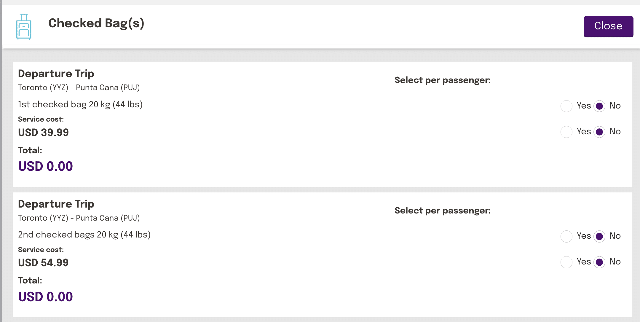 When purchased separately, carry-on and checked bag pricing varies depending on when they’re booked and paid for. Unsurprisingly, the cheapest time to pay for these add-ons is during booking as the cost increases as the flight nears and is even more expensive if you add them at the airport.
