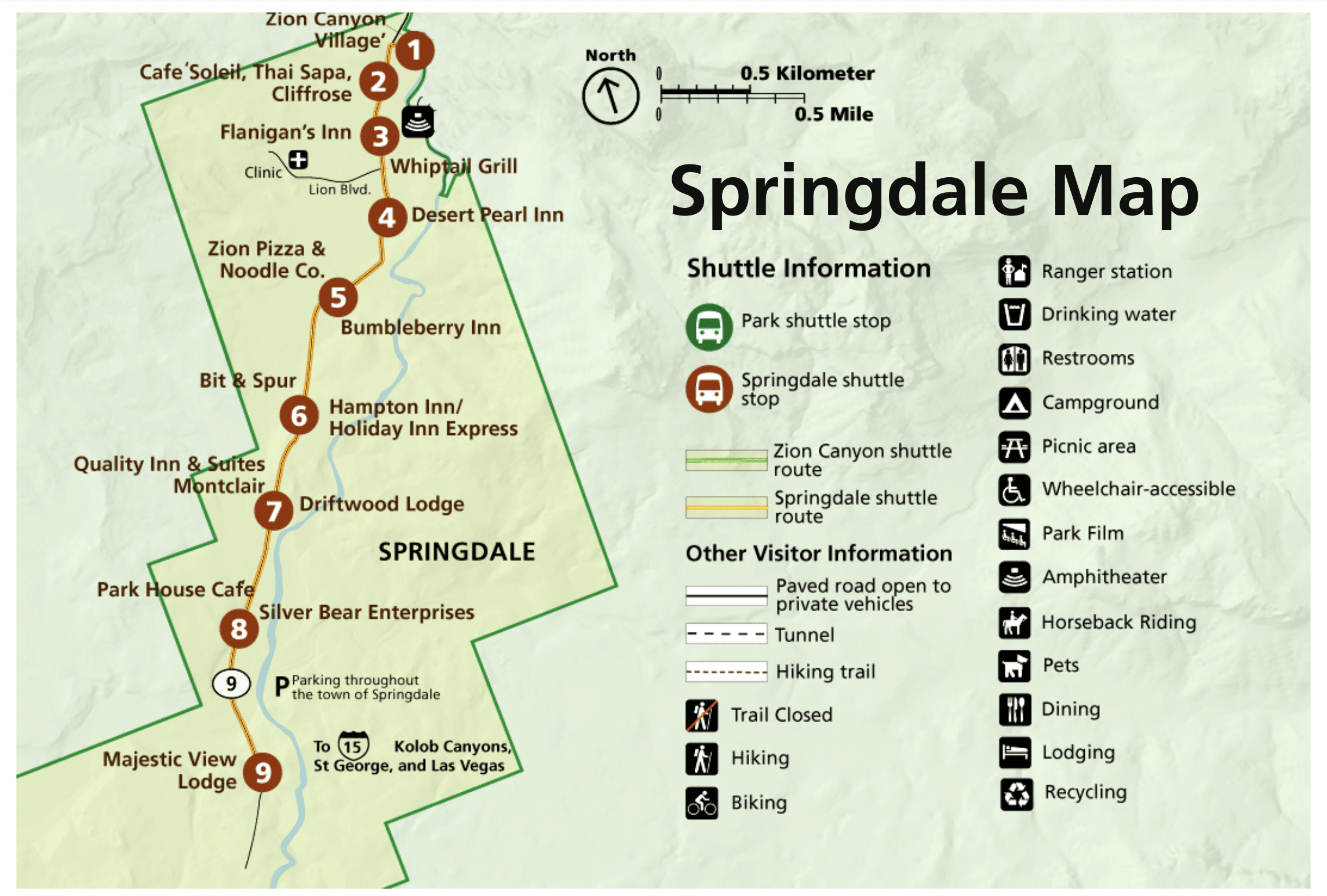 If the walk is too far from your hotel, then just hop on the town’s free shuttle bus that runs every 10–15 minutes between Zion Canyon Visitor Centre and several pick-up locations within Springdale.