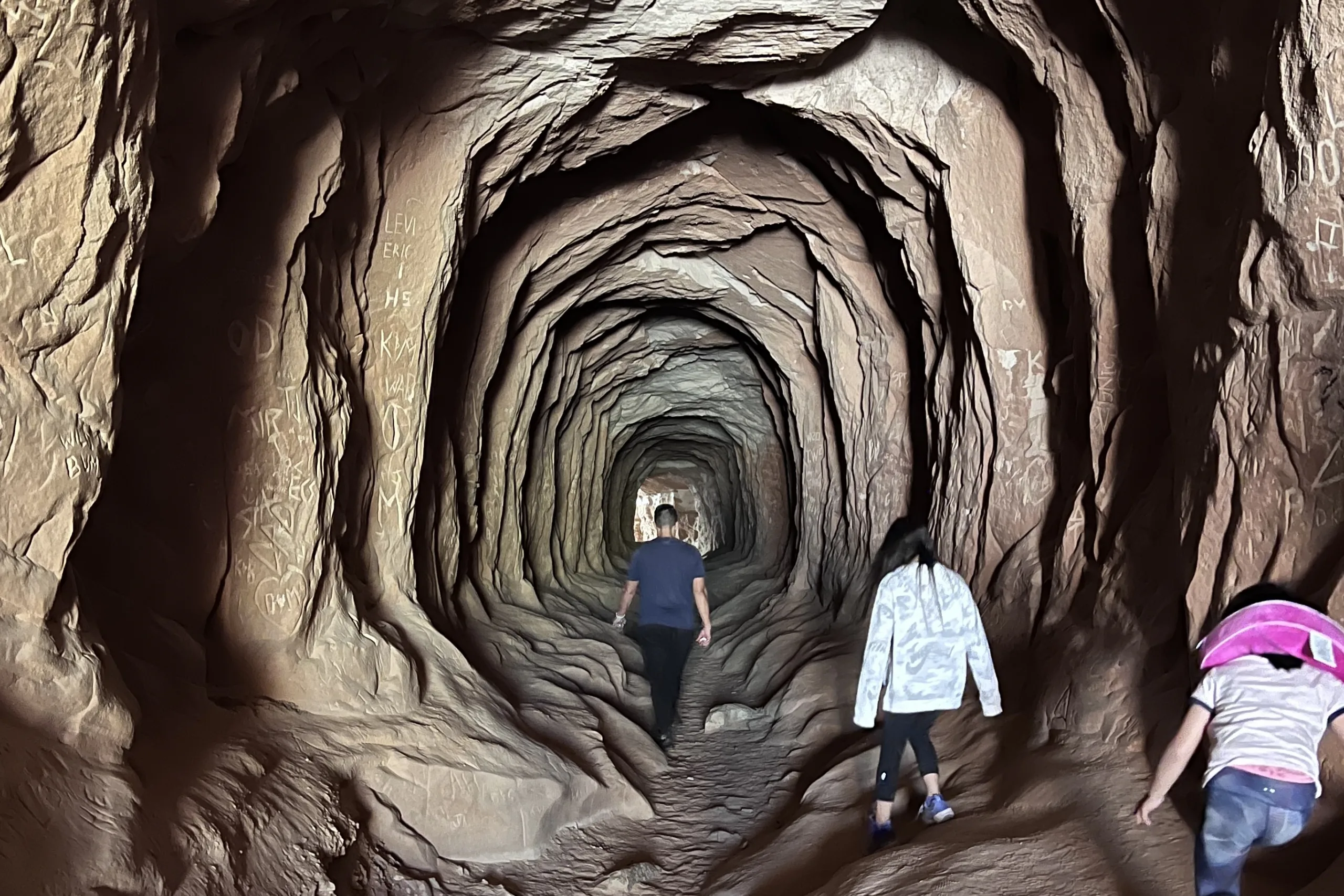 Belly of the Dragon is a short hike that goes through a human-made tunnel, with part of it created by the flow and drainage of water from the canyons.