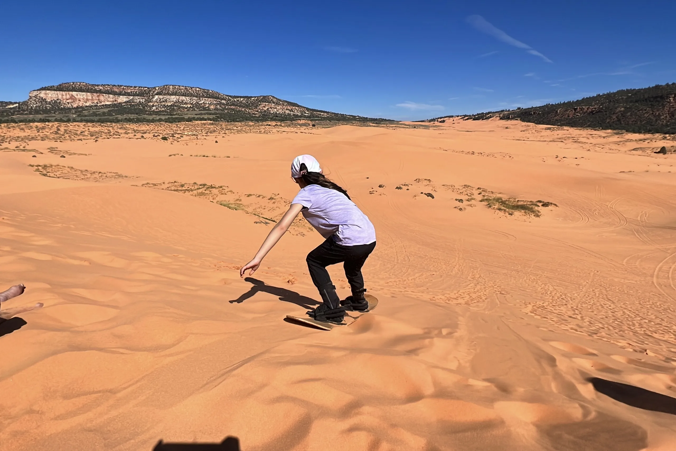 Coral Pink Sand Dunes is a state park that offers a unique landscape for kids to explore the dunes. You can rent toboggans and sandboards from the visitor centre for $25 (USD) each.