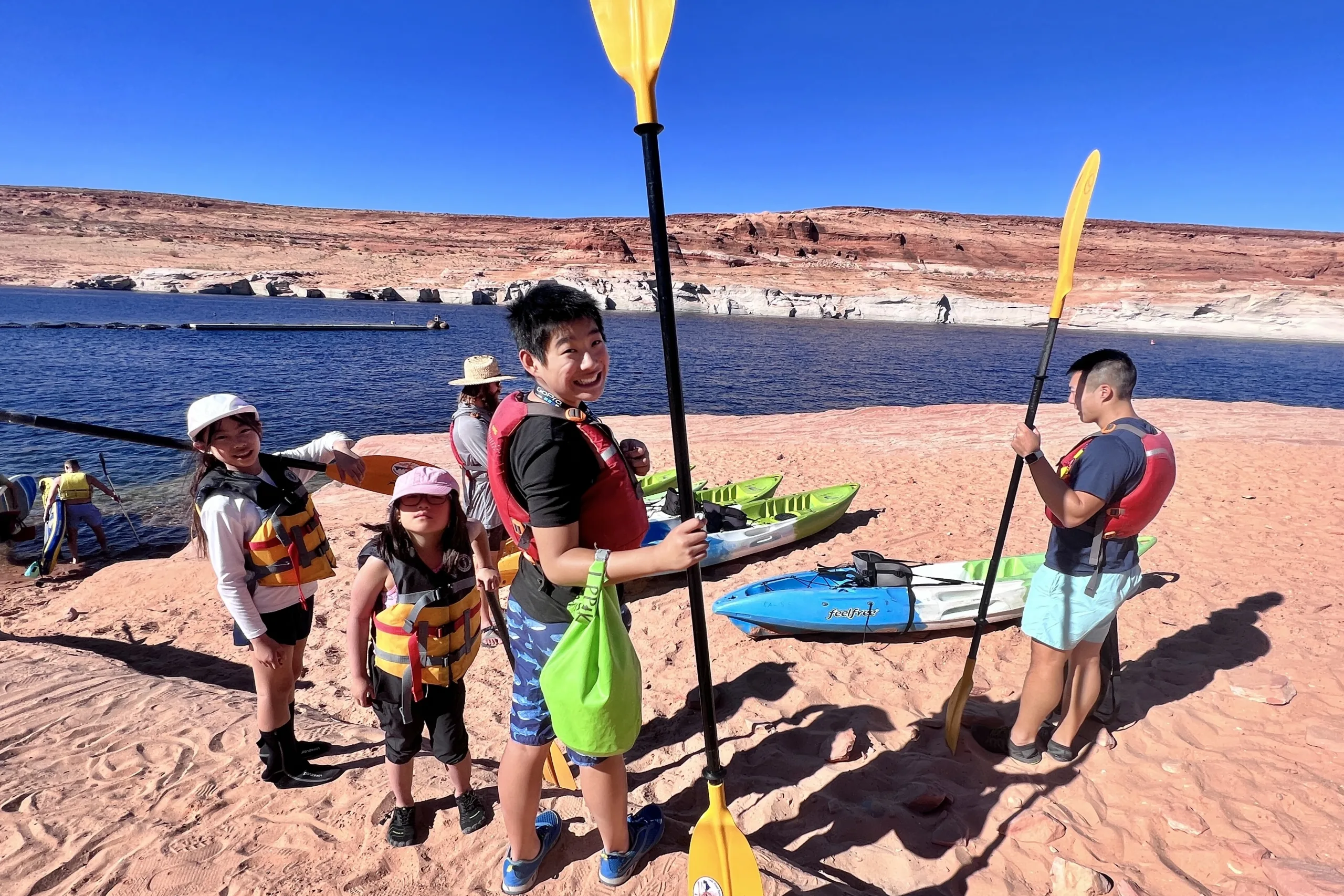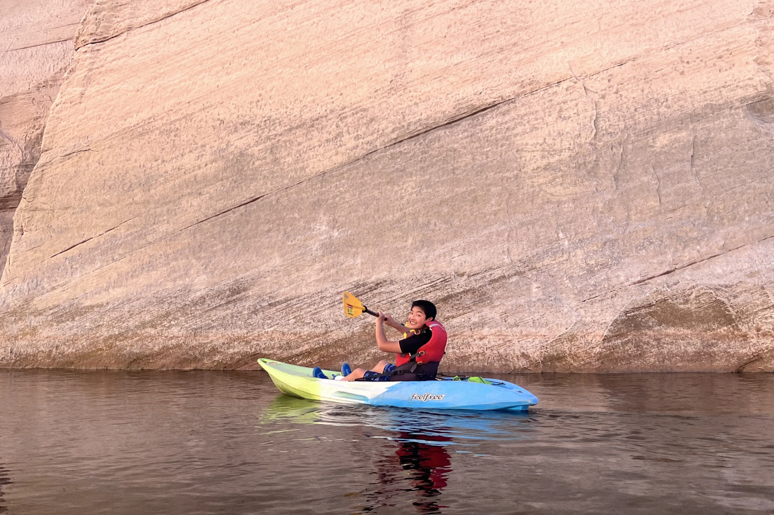The company doesn’t recommend that children under 12 kayak on their own. There’s a portion through Lake Powell which can be a bit rough, with heavy boating traffic.