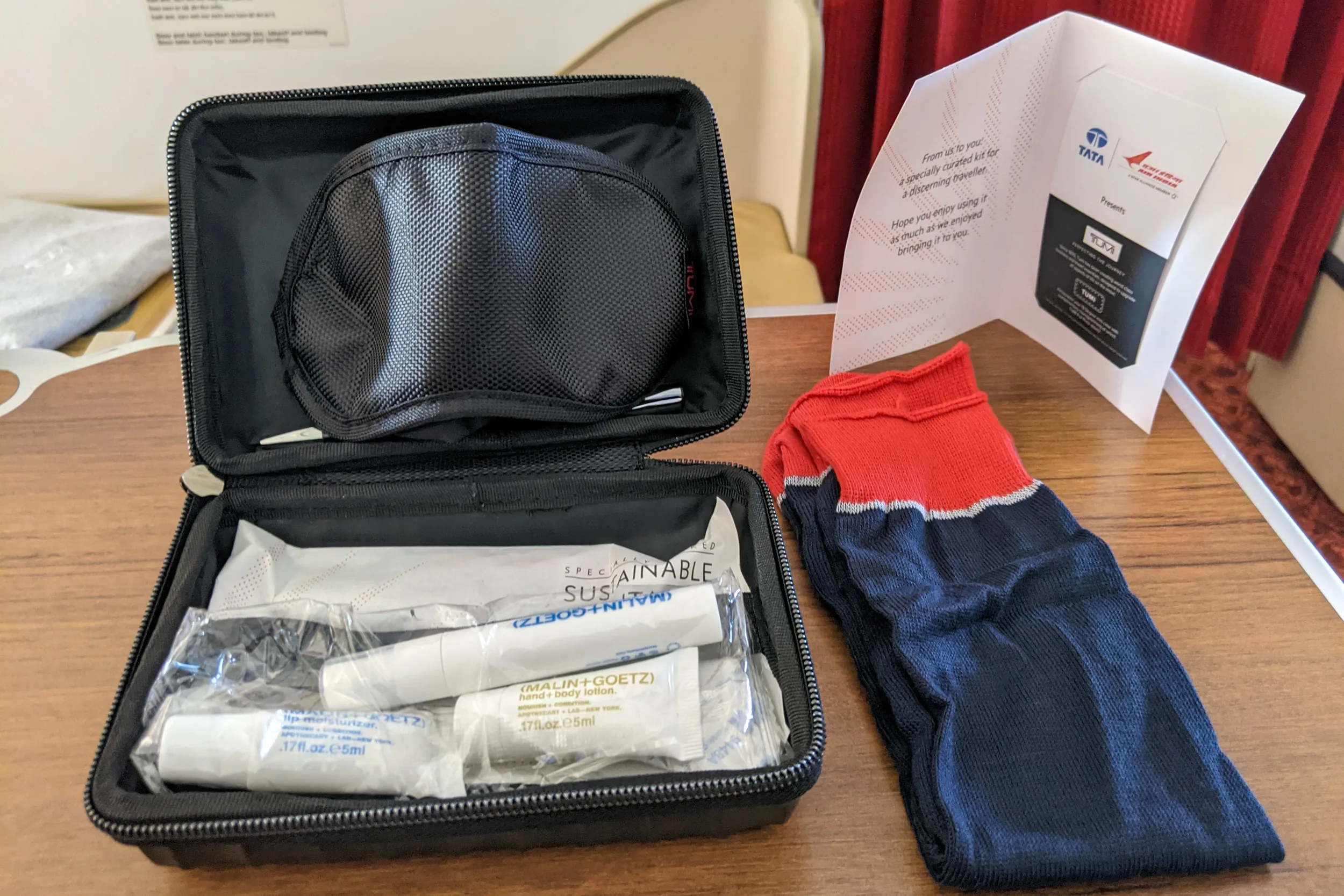 Air India economy passengers on ultra-long-haul flights will also continue to receive an amenity kit made of reusable Kraft paper with an eye mask, socks, and hand lotion.