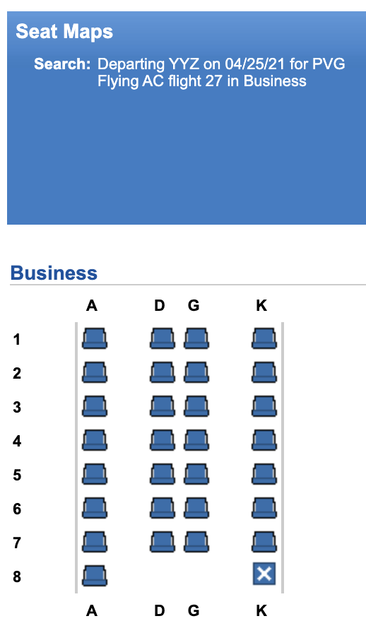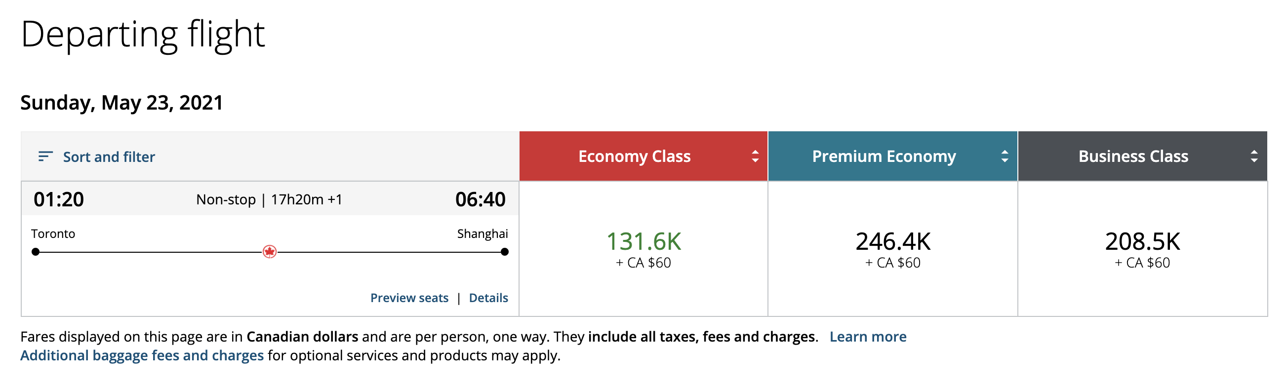 These days, Air Canada operates the Toronto–Shanghai service (with an intermediate stop in Seoul to avoid excessive quarantine measures for their crew) once a week. As you can imagine, these tickets get very expensive due to the tight supply, both in cash and in Aeroplan points, now that dynamic pricing is in play.