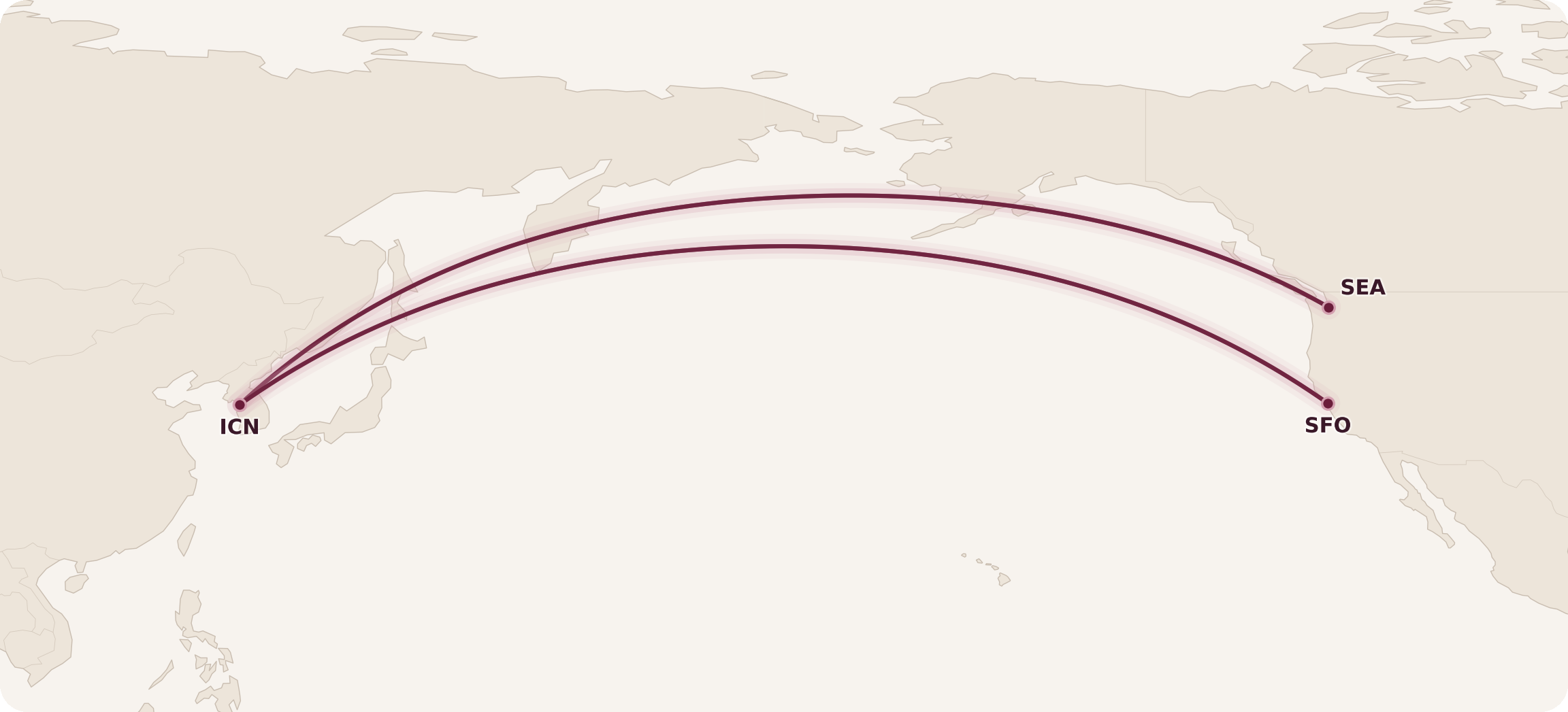 In fact, I’d say I was lucky to find any business class space at all to cross the oceans. We’re looking to spend Christmas here in Toronto with Jessica’s family before heading out, so I was focusing on December 26-28 for our outbound. To my surprise, there was still some space in Asiana Airlines business class from the US West Coast to Seoul.
