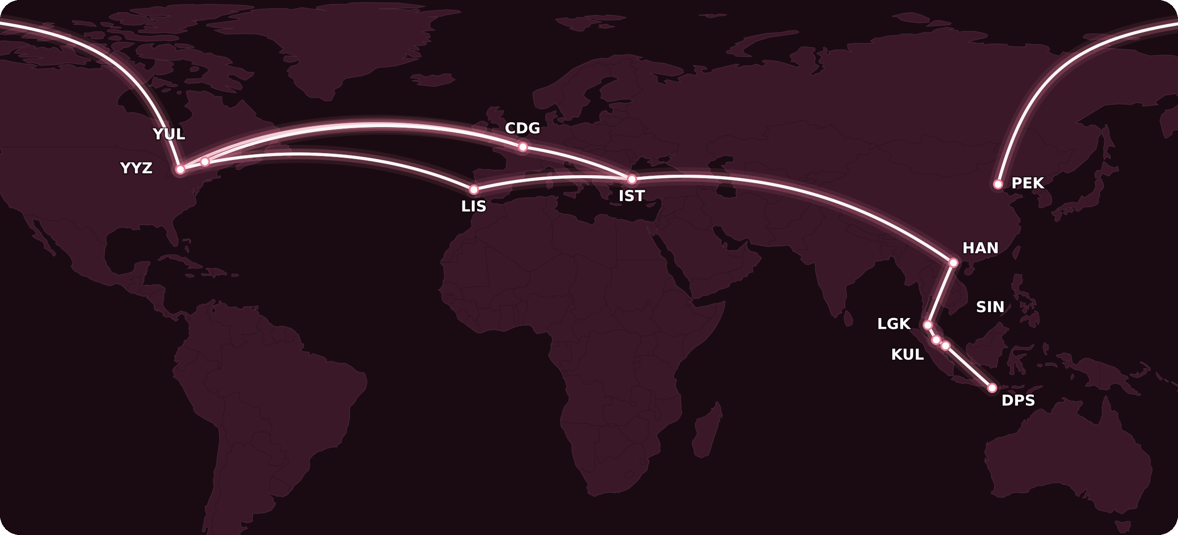 Aeroplan taxes and fees, YTO–LIS–PAR–IST–HAN–SIN;DPS–SIN–PEK–YUL–YTO: $316