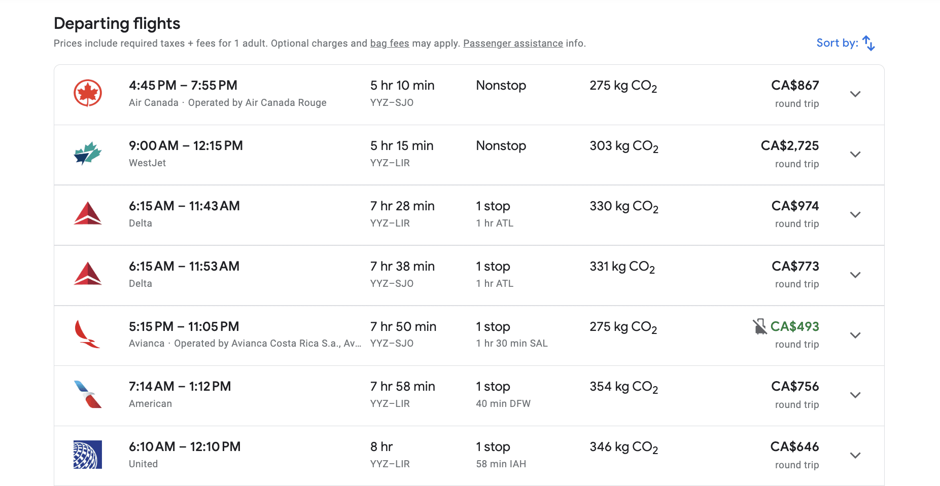 Other award options include redeeming through American Airlines AAdvantage program for 11,000 miles one way from Toronto to Liberia, or if you have enough WestJet dollars and a companion pass, you can leverage those to bring down the cost of your flights.