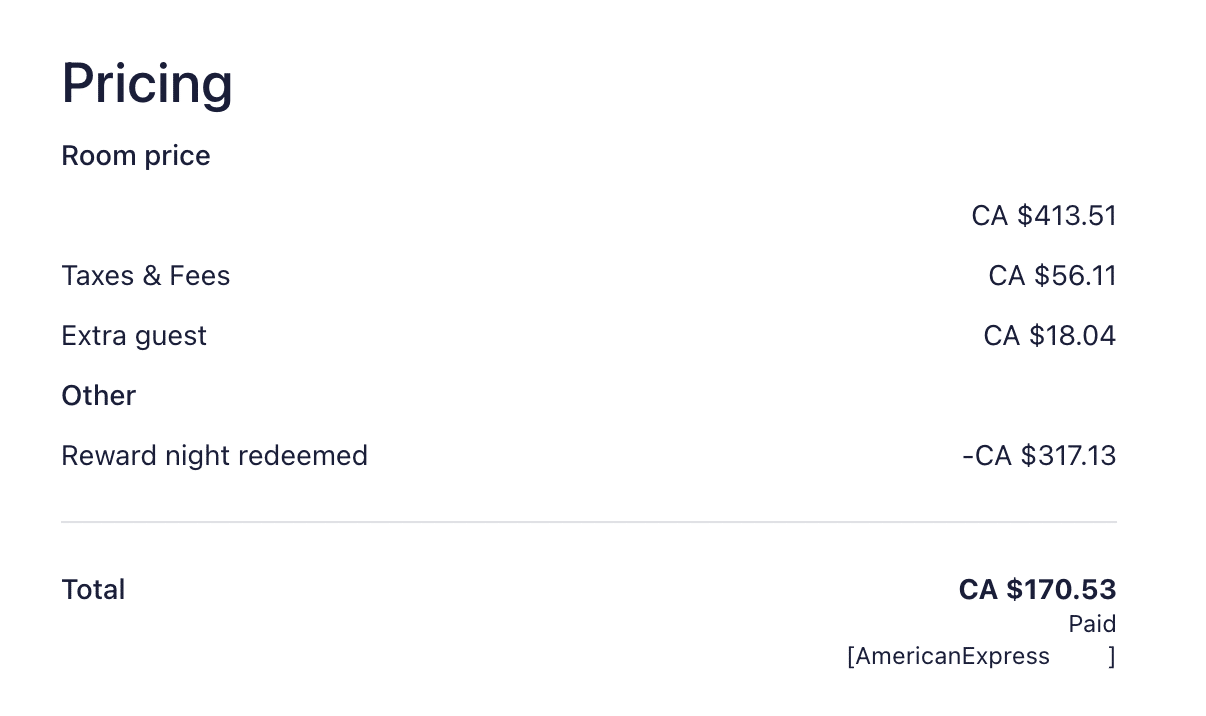 I also looked at using Marriott Bonvoy points as an option, but the rates weren’t favourable at all, with the rooms costing 42,000–76,000 points per night.