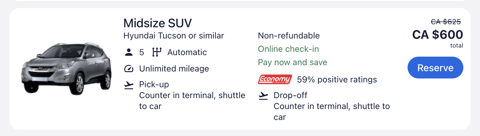 Flights can be expensive, costing an average of $800 (CAD) for a round-trip fare.