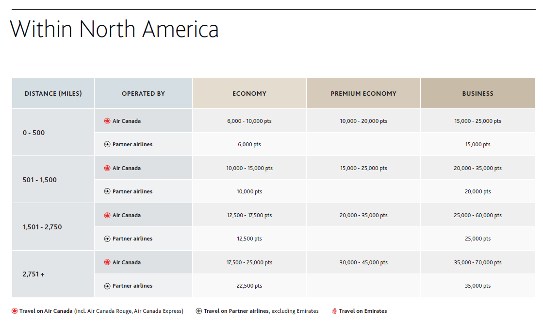 While finding flights on Air Canada within the listed point range is possible, during peak travel times, the redemption costs were going for double this amount of points.