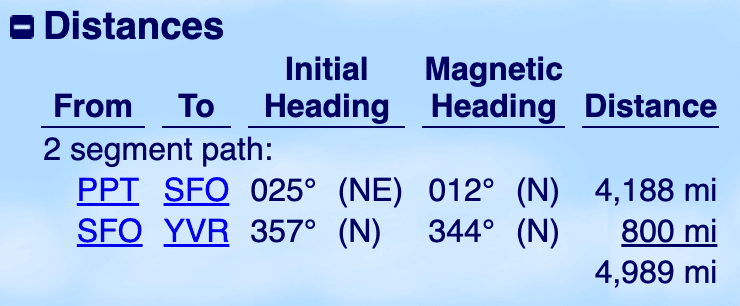 While I had originally secured seats on the Air Tahiti Nui’s new Papeete–Seattle route for 80,000 American miles, I swapped it for the United routing using a lower amount of Aeroplan points as soon as it became available.