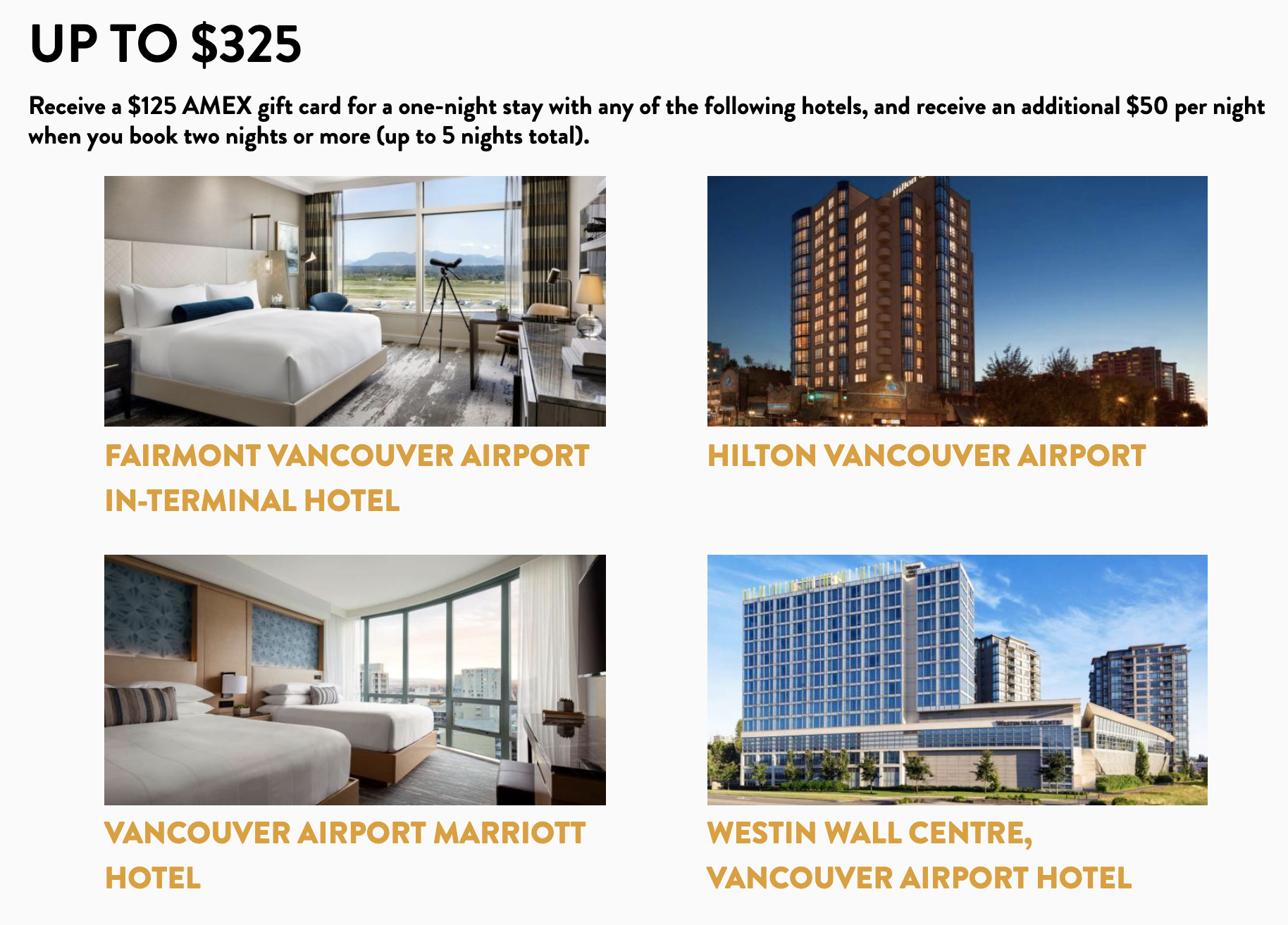 In my case, I decided to book the Sheraton YVR, Marriott YVR, and Hilton YVR on three subsequent nights, whose Stay Richmond rates all fell within the region of $200 after-tax (including a Junior Suite at the Marriott!), which will each be offset by a $125 prepaid gift card.