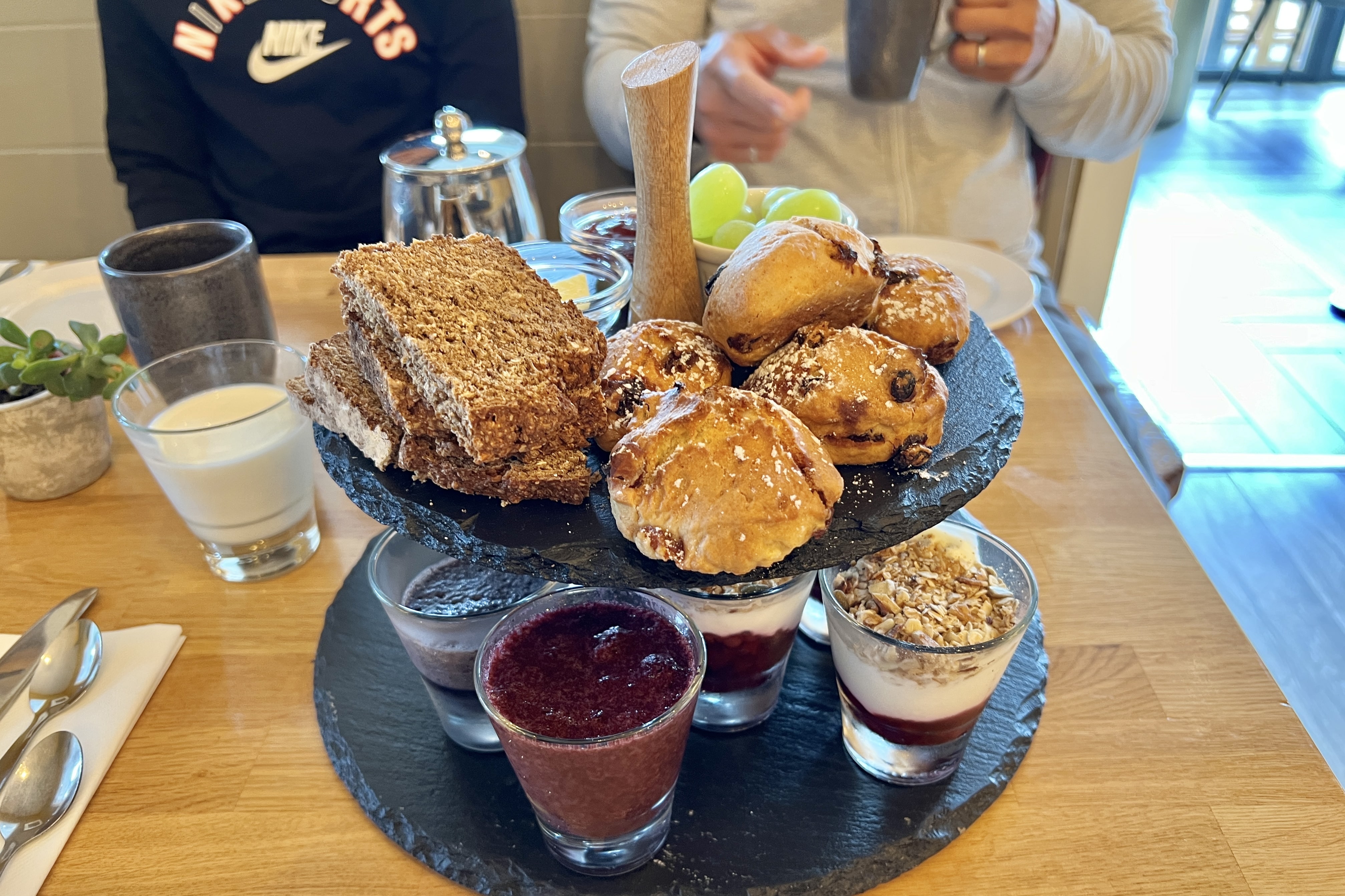 Breakfast was included in our stay, and consisted of a platter of yogurts, smoothies, and scones, plus a choice of a main dish off their menu. They have their own small greenhouse in the back, and grow much of the produce used for their dishes.