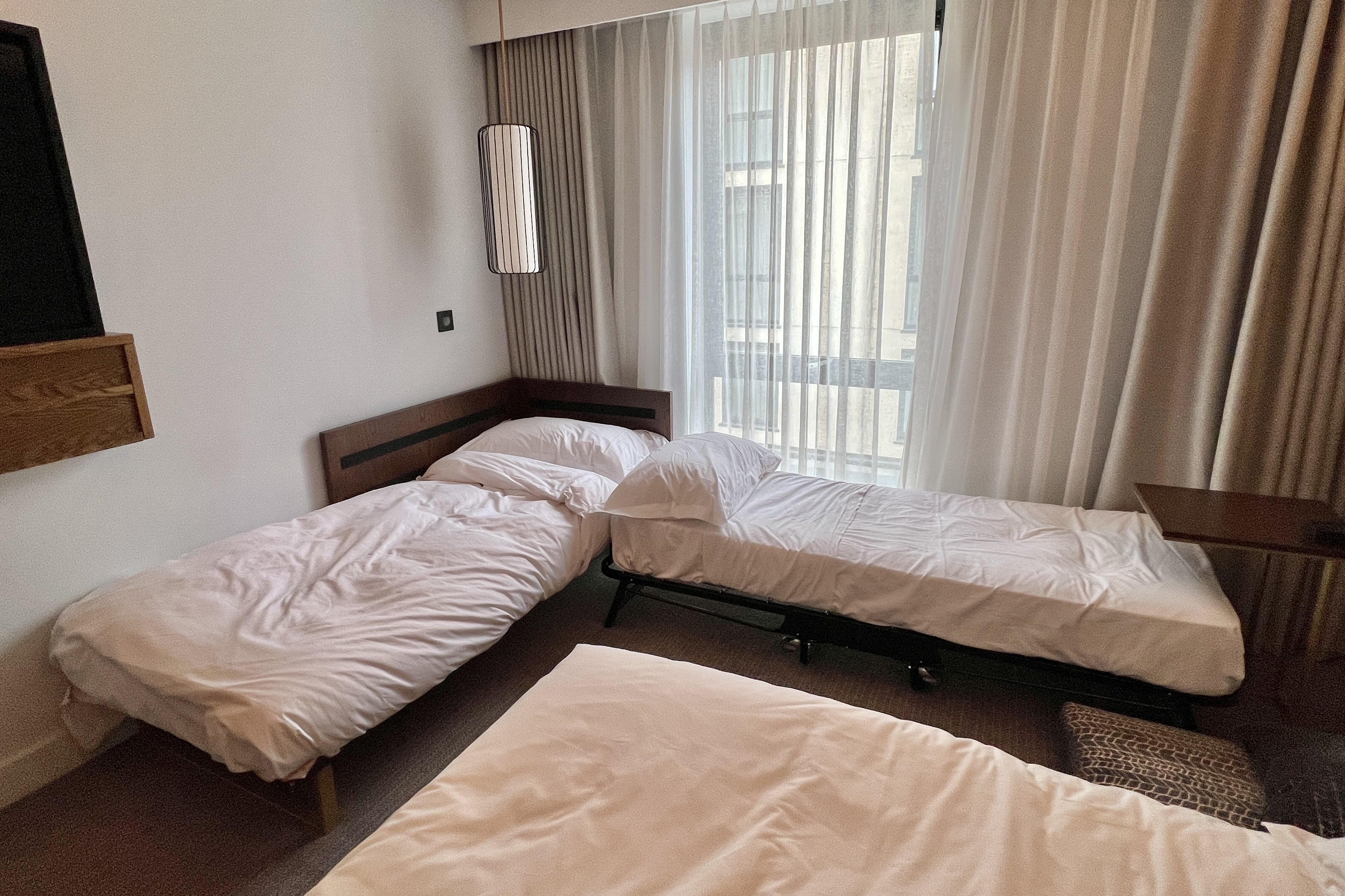 There was a sofa in the room that could only accommodate one individual. When I called down to enquire, they sent up a rollaway bed free of charge.
