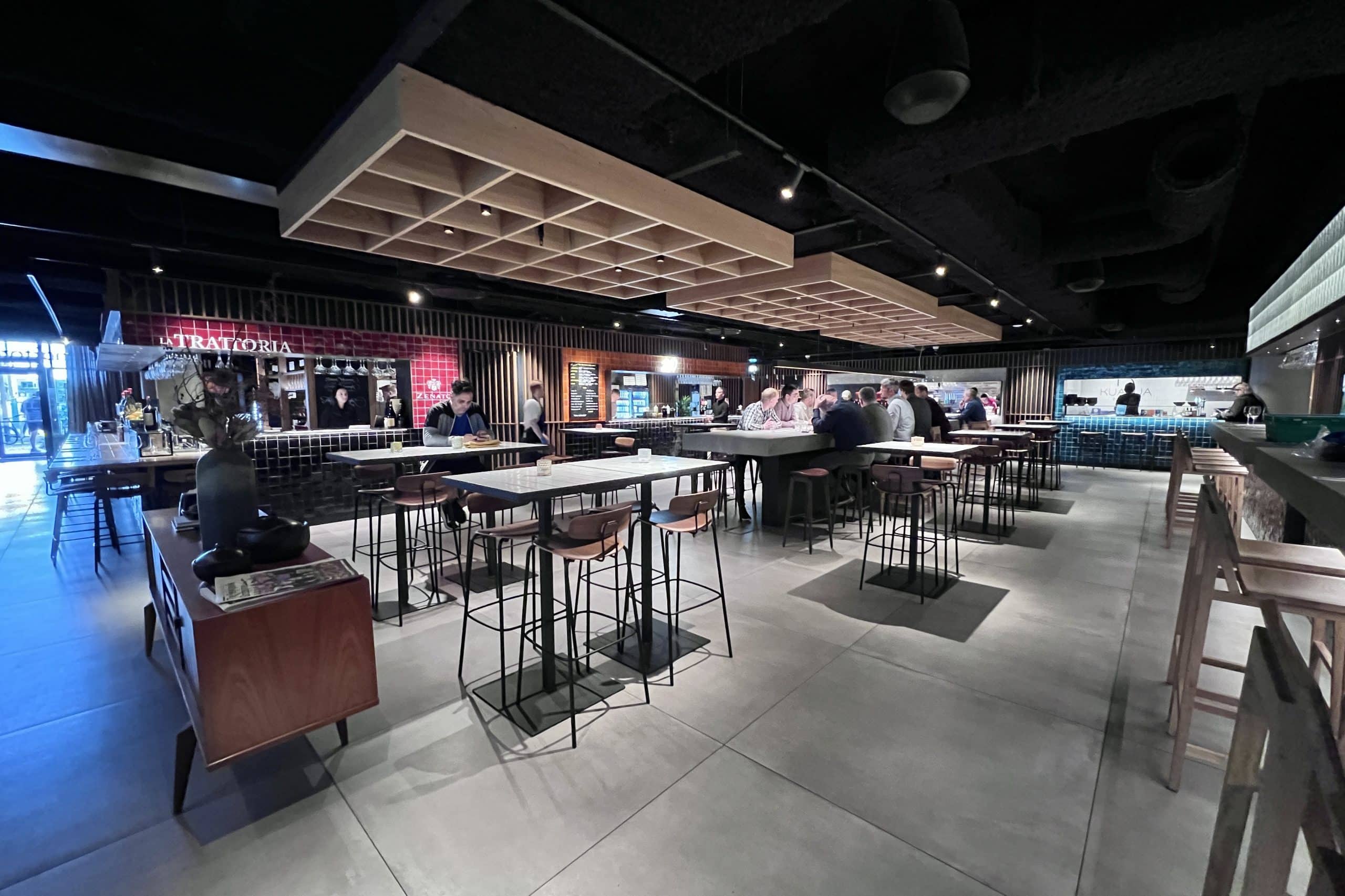 They’re like more upscale food courts with a variety of food options and plenty of seating. For example, Posthus Foodhall & Bar had pizza, Italian food, tacos, Indian food, and an Asian fusion restaurant. Alcohol is also served.