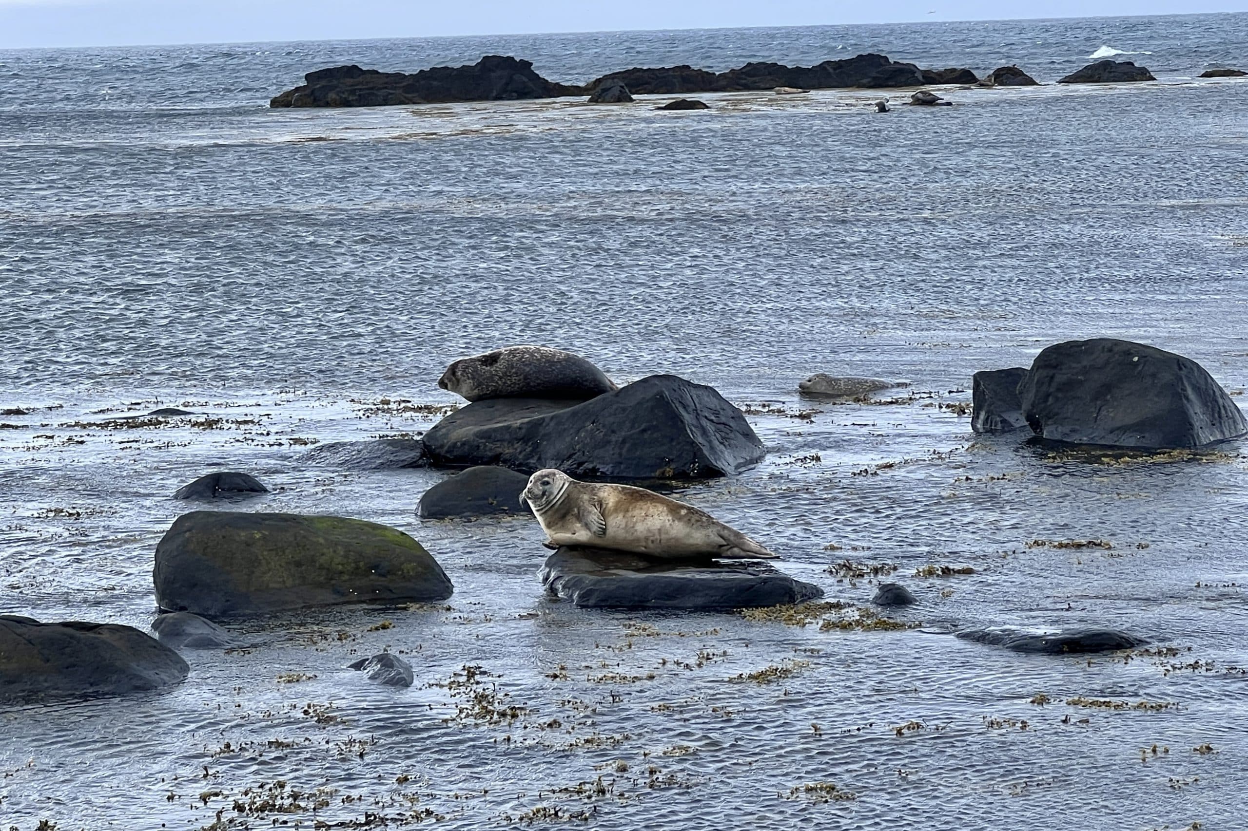 You can see them lazing around on rocks and popping their heads in and out of the water. A bunch of them were located on the far end of the beach that required climbing over some big boulders, which can be dangerous for toddlers.