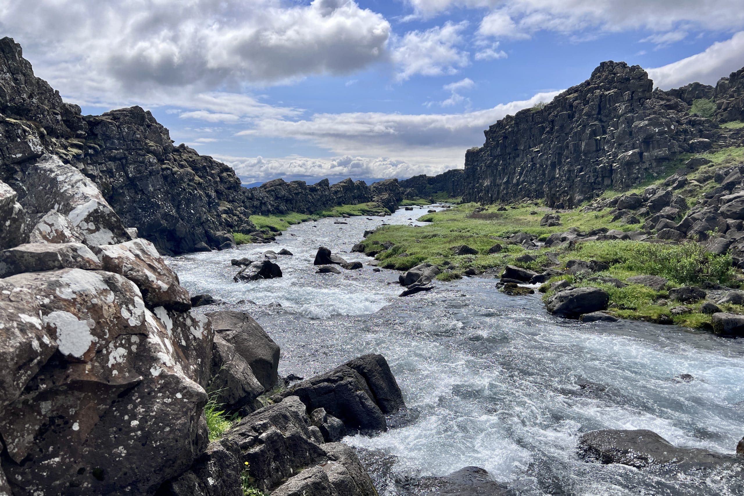 Here, you can visit Thingvellir National Park, which sits in a rift valley and was where Iceland’s parliament was once located.
