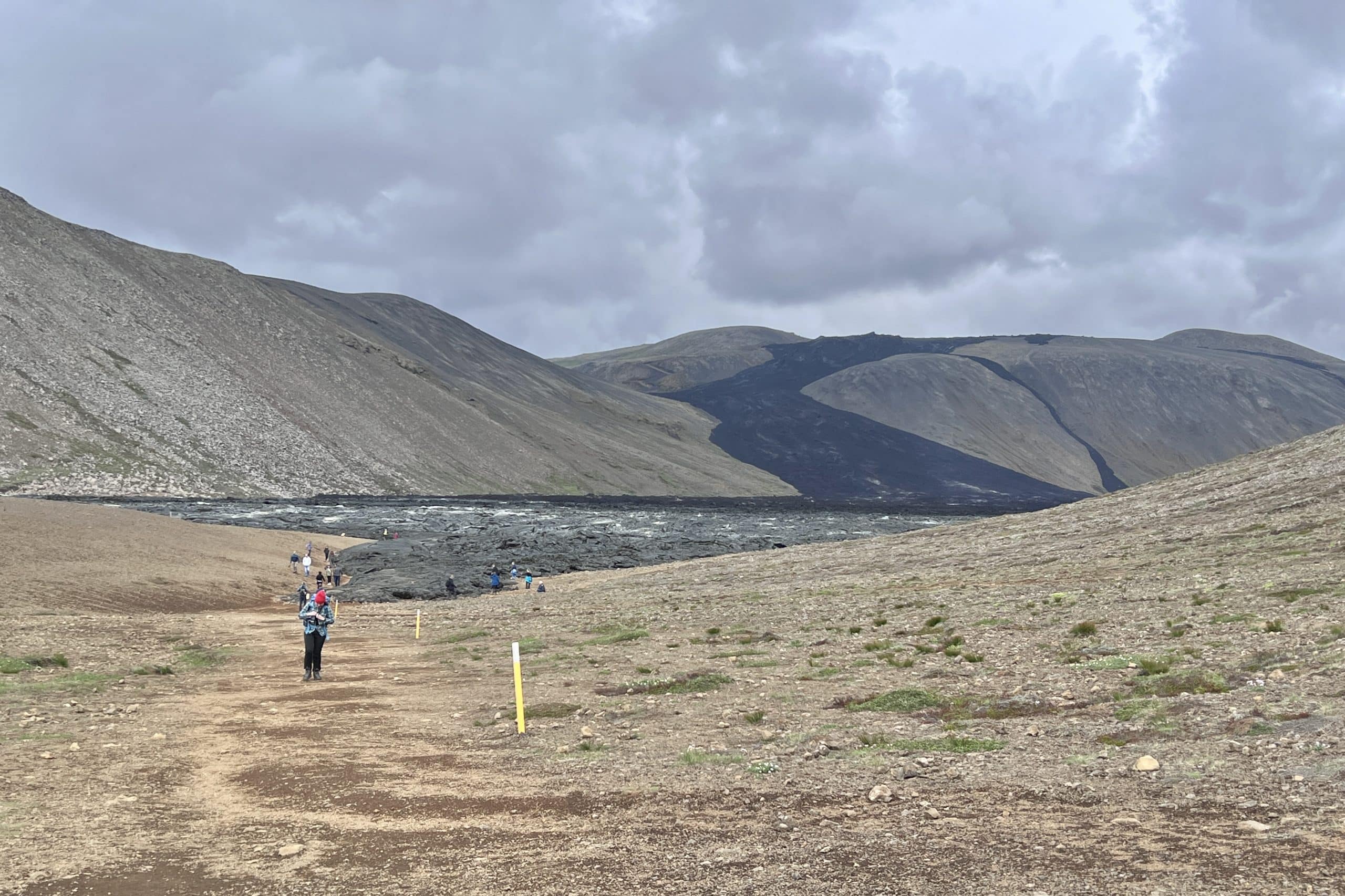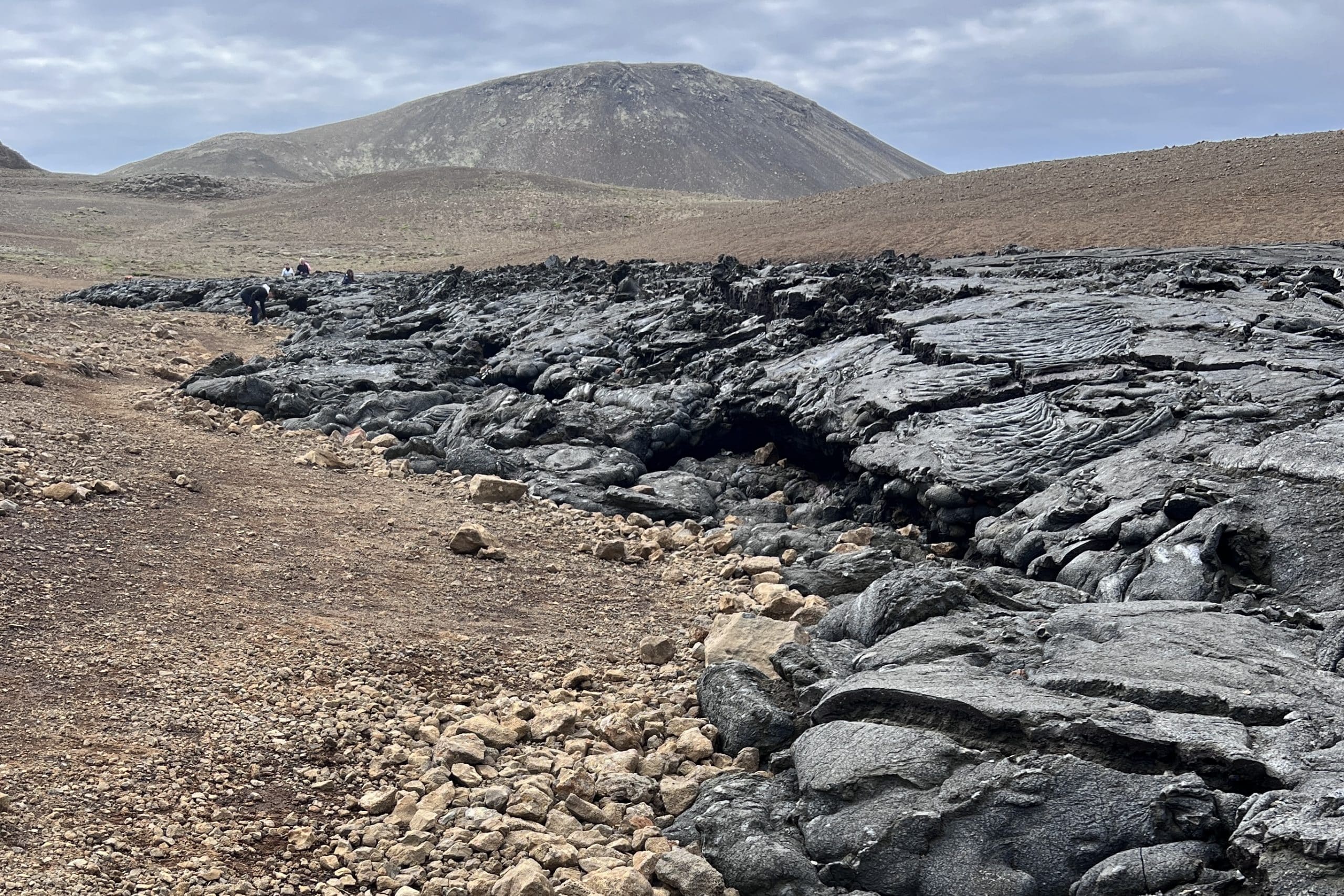 Fagradalsfjall Volcano is a volcano that erupted in 2021. Hiking to the top of the volcano and back requires around five hours. However, if you just want to see the end of the lava fields, you can easily do so with a short 15-minute hike to the Nátthagi viewpoint.