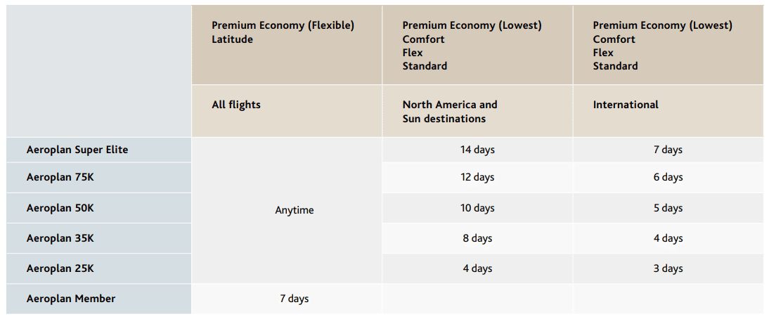 Recall that Priority Rewards halve the cost of Aeroplan points for a particular booking. Priority Rewards earned with each status tier may be applied to different classes of service to different zones of travel.