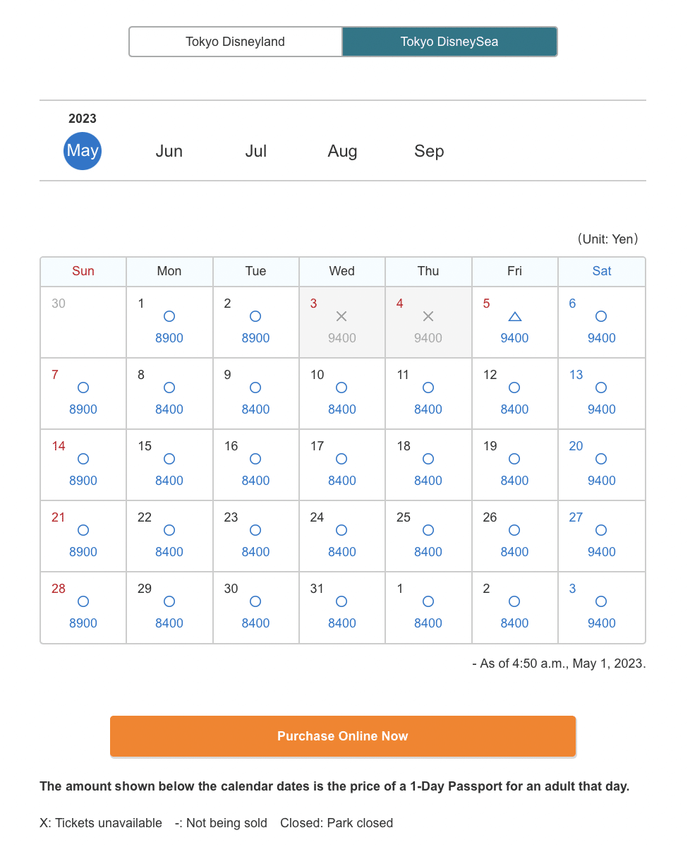 If you’re planning on going to Tokyo Disney Resort, consider purchasing your ticket beforehand. It’s not uncommon to see days that are sold out a week or more in advance.