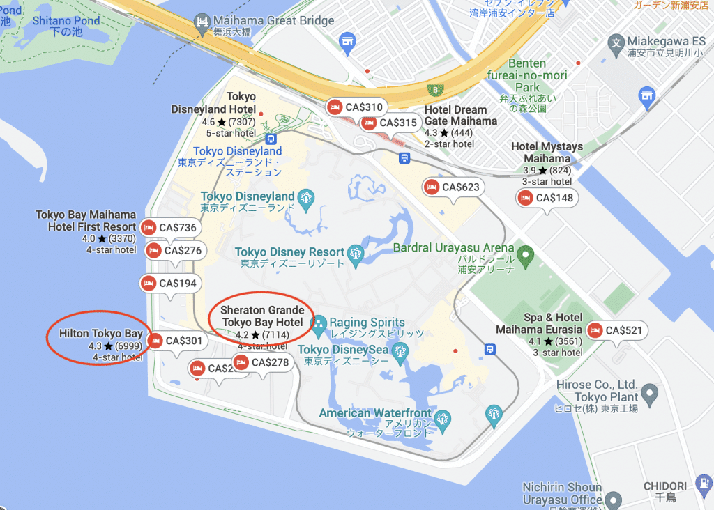 If you’re spending more than a day at Tokyo Disney Resort, it may make sense to stay at an onsite resort as well. Fortunately, you can find the Sheraton Grande Tokyo Bay Hotel and the Hilton Tokyo Bay right outside the resort.